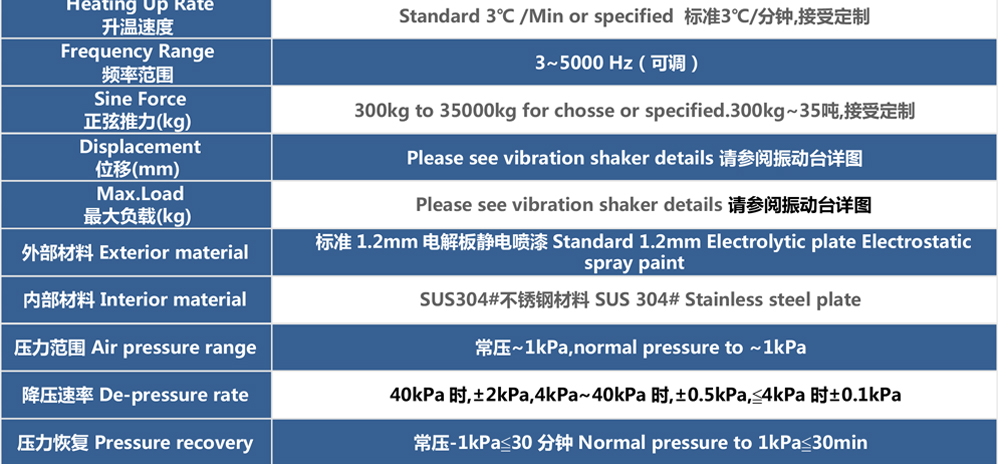 用途:四綜合環(huán)境試驗箱采用滾動密封技術(shù)、動圈中心保持技術(shù),將溫度、濕度氣候應(yīng)力試驗振動力學(xué)應(yīng)力試驗與高海拔低氣壓應(yīng)力試驗集成一體,成為溫度、濕度、振動、低氣壓綜合應(yīng)力試驗系