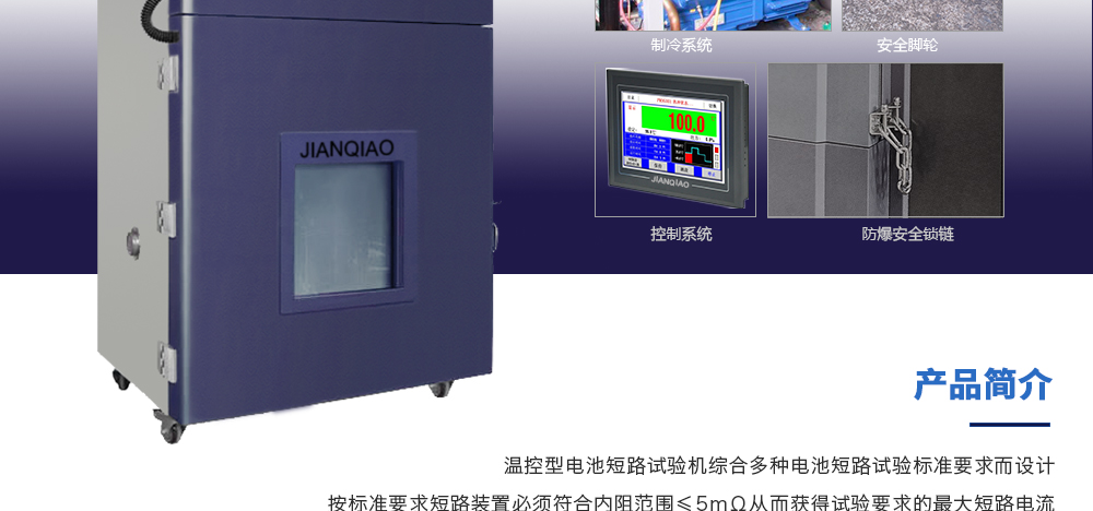用途:溫控型電池短路試驗(yàn)機(jī)綜合多種電池短路試驗(yàn)標(biāo)準(zhǔn)要求而設(shè)計(jì)按標(biāo)準(zhǔn)要求短路裝置必須符合內(nèi)阻范圍≤5mΩ從而獲得試驗(yàn)要求的最大短路電流