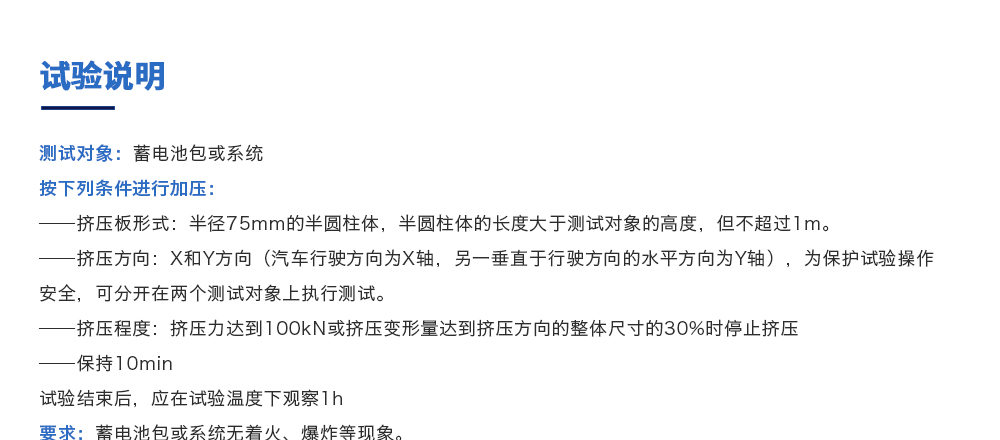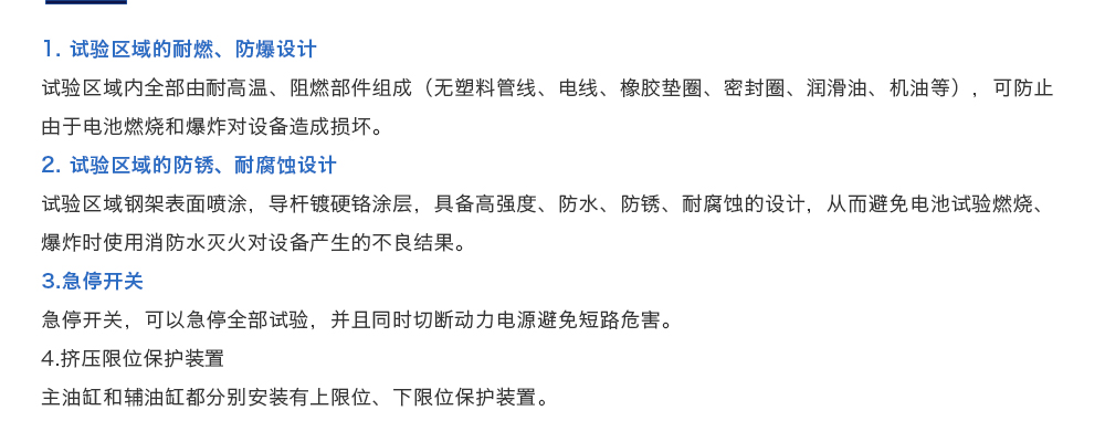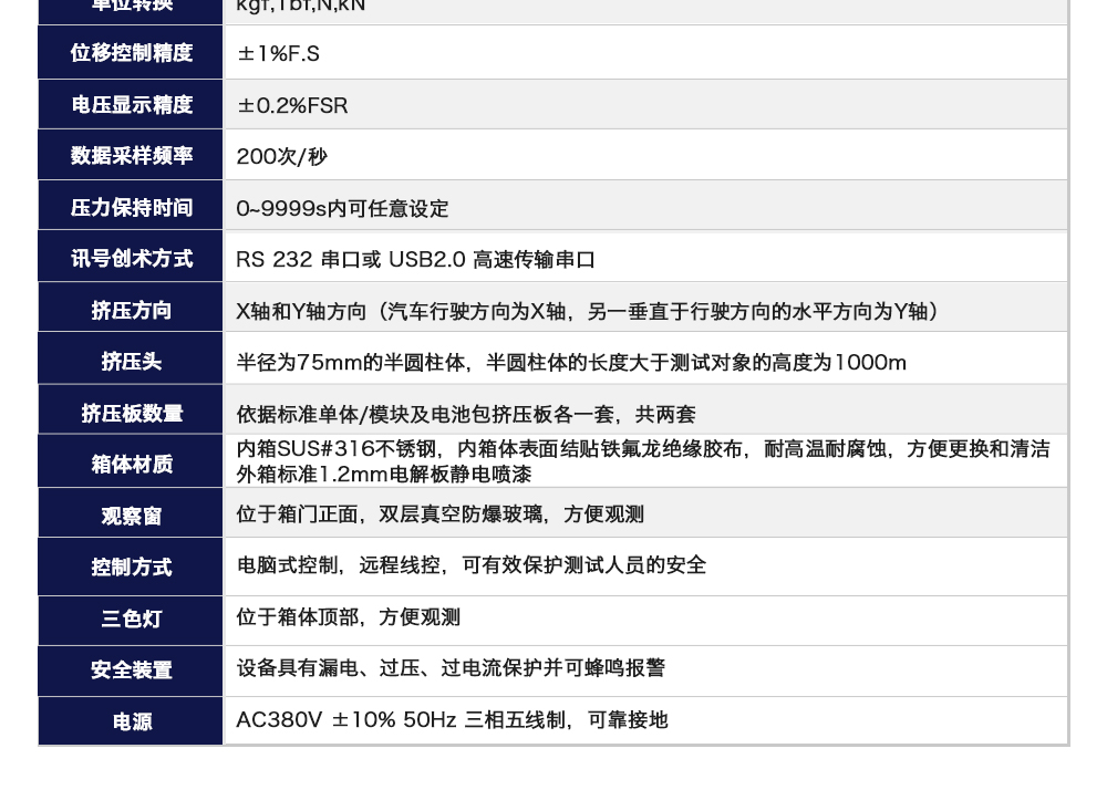 產(chǎn)品型號(hào):JQ-5067-AL20 品牌:劍 喬 用途:電池包擠壓試驗(yàn)機(jī)模擬各類(lèi)動(dòng)力動(dòng)力電池包和系統(tǒng)在運(yùn)輸、儲(chǔ)存及使用過(guò)程中電池包遭受碰撞擠壓的情形,人工呈現(xiàn)電池在遭受擠壓時(shí)可能出現(xiàn)的不同狀況。咨詢(xún)熱線(xiàn):13829135130