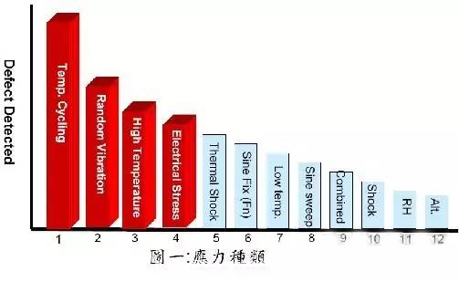 應根據對產品篩選的效果選擇相應的環境應力。對電子產品,快速溫變試驗箱(ESS)的應力主要選擇溫度(高、低溫)循環試驗和振動試驗,這兩種應力的組合篩選效果較好,能暴露產品各組裝等級大部分故障。